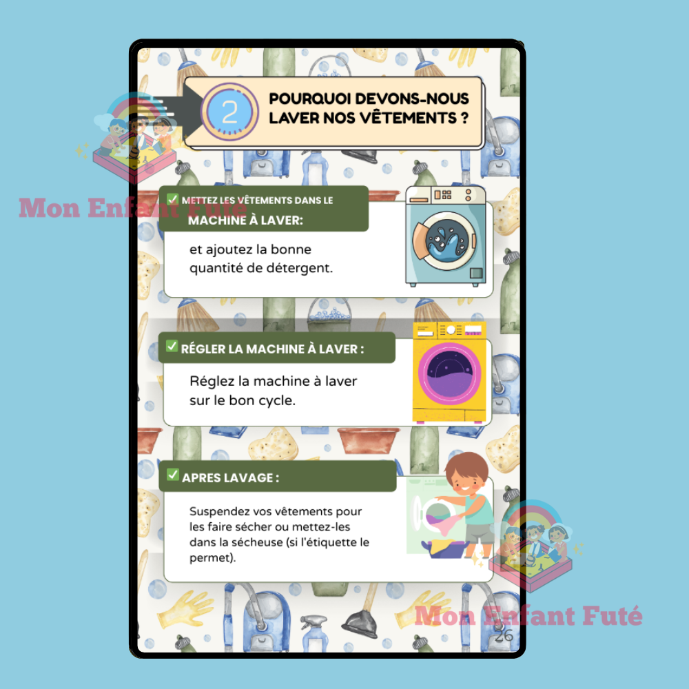 Imaginez votre enfant ranger sa chambre sans rappels, sauver une chemise tachée comme un pro ou plier le linge plus vite que vous ne pouvez dire « corvée terminée ». C’est la magie de ce livre.