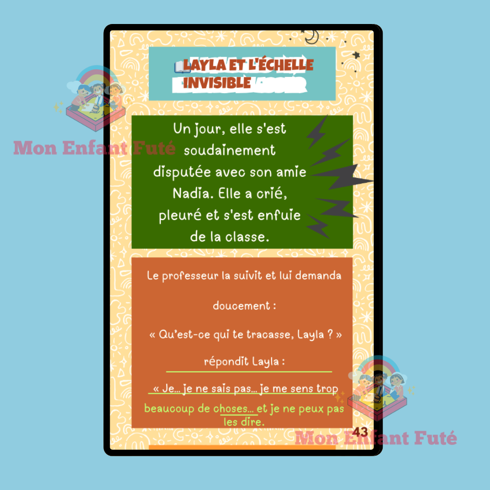 ✅ Pas de jargon thérapeutique : des jeux de rôle, des exercices de « Détective de la respiration », et des journaux d’émotions rendent l’apprentissage amusant et concret.